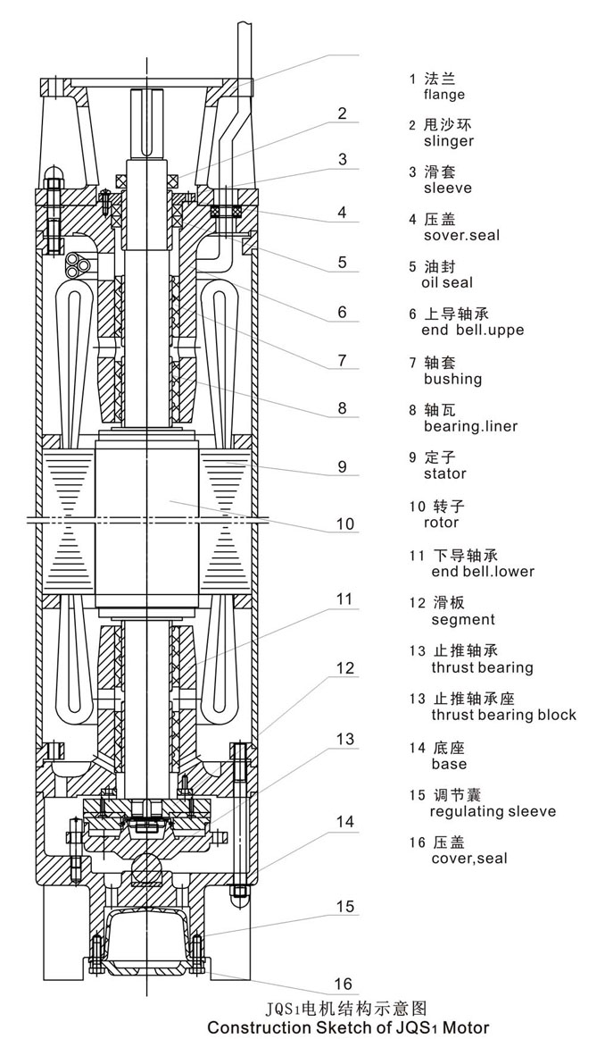 JQS 系列井用潛水三相異步電動機(jī)為濕式充水密封型機(jī)構(gòu),主要用于8’’、 10’’深井中驅(qū)動潛水泵提取地下水,為城市、工礦企業(yè)、農(nóng)田灌溉、牧場和居民生活提供生產(chǎn)和生活用水。JQS 1 系列電機(jī)設(shè)計合理,并經(jīng)多年生產(chǎn)實踐經(jīng)驗屢加改進(jìn),具有機(jī)構(gòu)簡單、噪音小、性能優(yōu)良、使用可靠、維修方便、運用于水中、節(jié)約基礎(chǔ)投資等特點。