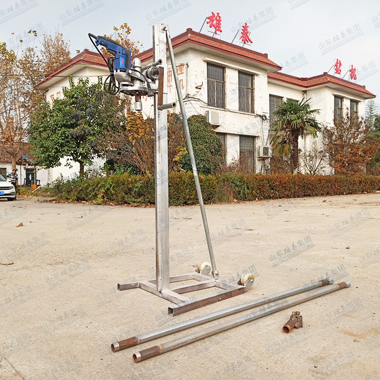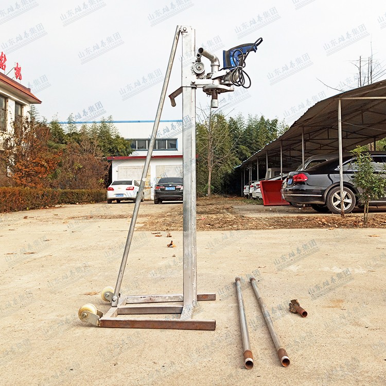 本款打井機(jī)采用了多齒輪設(shè)計(jì),雖然增加了生產(chǎn)成本和制造工藝,但這樣設(shè)計(jì)增加了打井機(jī)力量(就像汽車一檔比四檔有力、還便于掌握一樣的道理),打井有力,打井速度快、便于掌握。如果齒輪少了,一千瓦的電機(jī)還沒有七百多瓦的電機(jī)力量大、而且轉(zhuǎn)速高、打井時(shí)難于掌握。這款多齒輪結(jié)構(gòu)鉆井機(jī)經(jīng)過許多用戶多年使用,打井效果非常理想!便攜式小型民用電動(dòng)打井機(jī)廣泛應(yīng)用于家庭/工廠生活用水打井、農(nóng)田灌溉水井、安裝水空調(diào)、工地打樁等。本公司生產(chǎn)的便攜式小型民用電動(dòng)打井機(jī)機(jī)頭,可隨意選配鉆頭,鉆頭價(jià)格另算。也可另配鉆桿,鉆桿直徑是32mm、一根長(zhǎng)約1.5米。